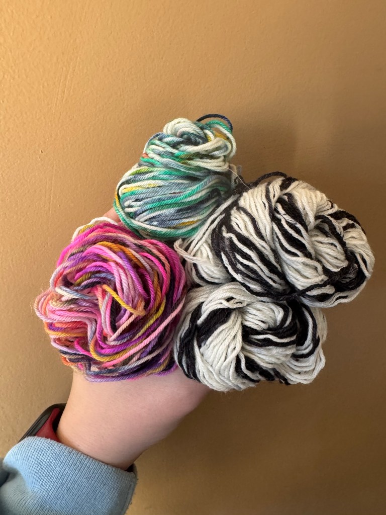 I think the pink and green are leftovers from some In The Light Shawls whereas the black and white are leftover from some recent socks. I am going to work on some socks for myself. So that is US 1 needles and 68 stitches in a toe up vanilla sock.