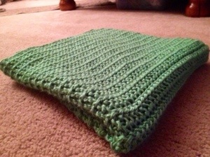 Victory is mine!! My soft green baby blanket is done and represents the first of many (I hope) stash busting projects! You can find my Ravelry notes here.