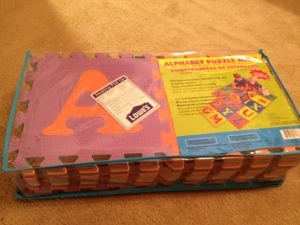I can finally block my finished garments like a big girl!!!! (No more pinning towels to my guest bed) After pricing many many blocking mats….I found the best bang for my buck was at Lowes. For $16 online and one hour pick up these alphabet beauties are mine!!! I figure they can serve a dual purpose when we ever have kiddos.