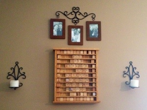 About half of those boxes are my craft supplies and the other half is just boxes that got dumped in the room as we set up the rest of the house. I’m happy to say that most of the house is now set. We are still waiting on a new bed to be delivered and my parents to bring the upstairs living furniture that we are “inheriting”.