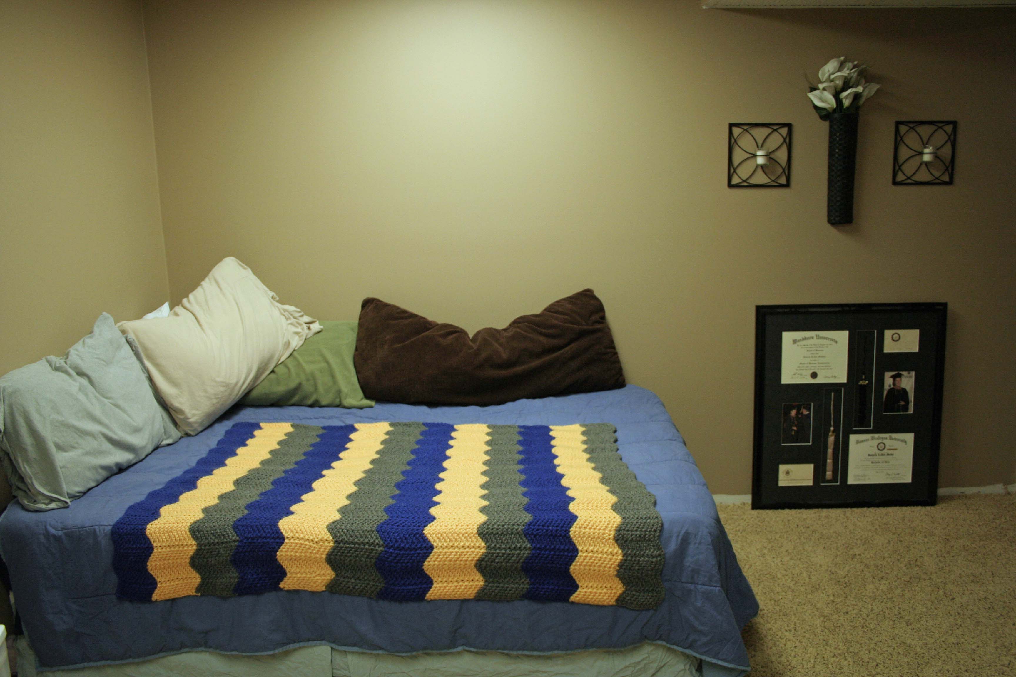 And finally our second guest bed and my new “couch” in the craft room. We are getting a new master bed and moving our old master bed to the guest room. So this bed had to go somewhere. It will be a nice place to stretch out and knit and when we have extra company we can pull it out for guests.