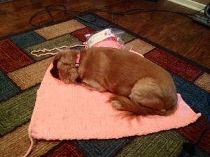 One downside….because I gave Chloe the first chenille blanket I made, she thinks all chenille blankets are hers…