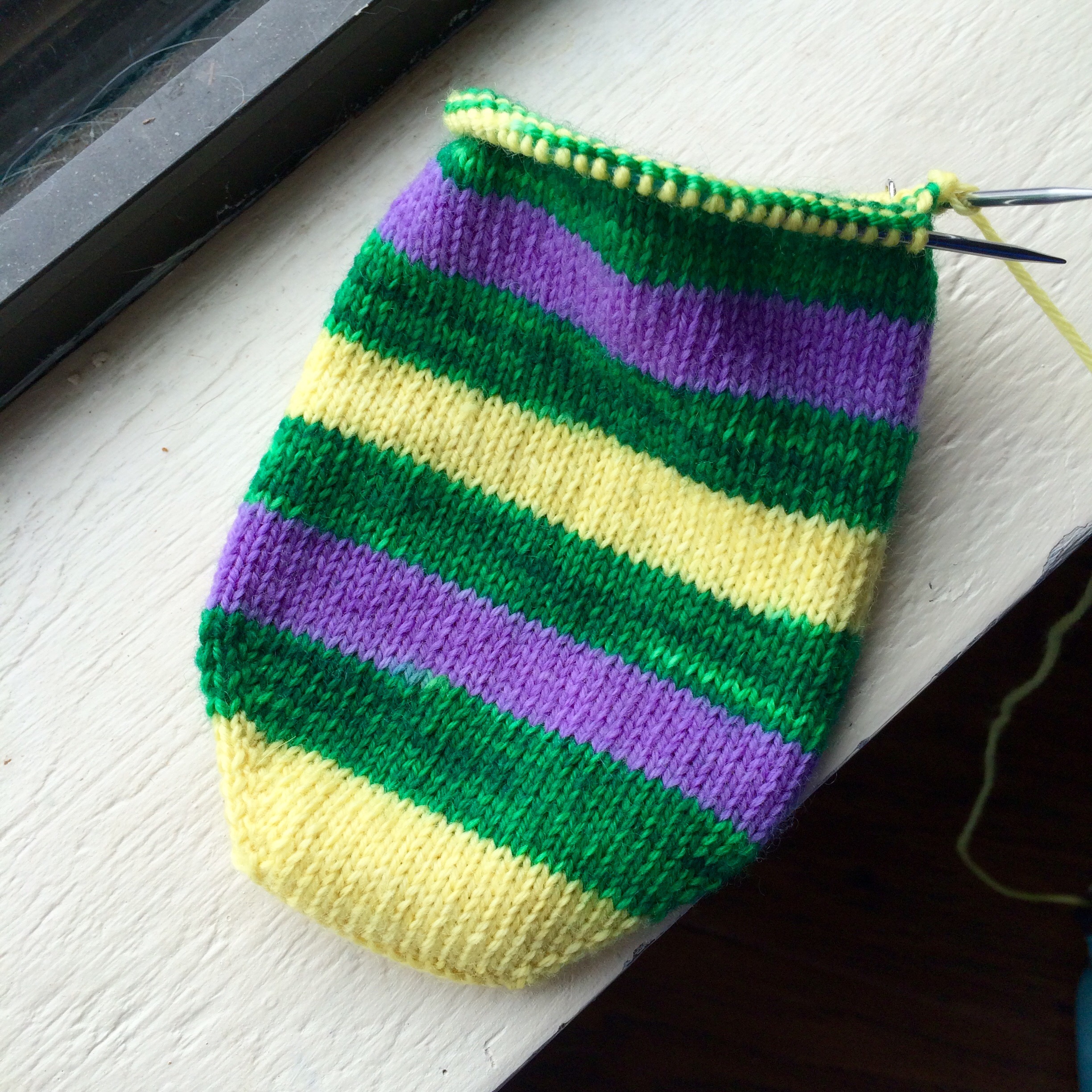 These will be toe up vanilla socks quite perfect for my purse knitting vacancy. I’m not sure what kind of heel I’ll do yet. The sock will speak to me soon enough! The husband and I had a date night to Hail! Ceasar and I got some serious knitting in. How gorgeous are these stripes!?