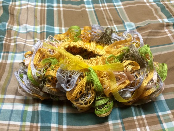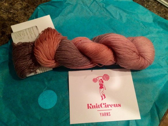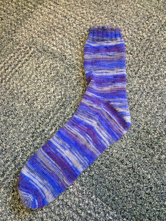 The yarn is pooling/flashing. I’m not sure which is which but you can see below. I can’t wait to work farther and see how this continues! It’s so different from the cake. (This is going to be one of my 2016 Sock Yarn Experiment.)