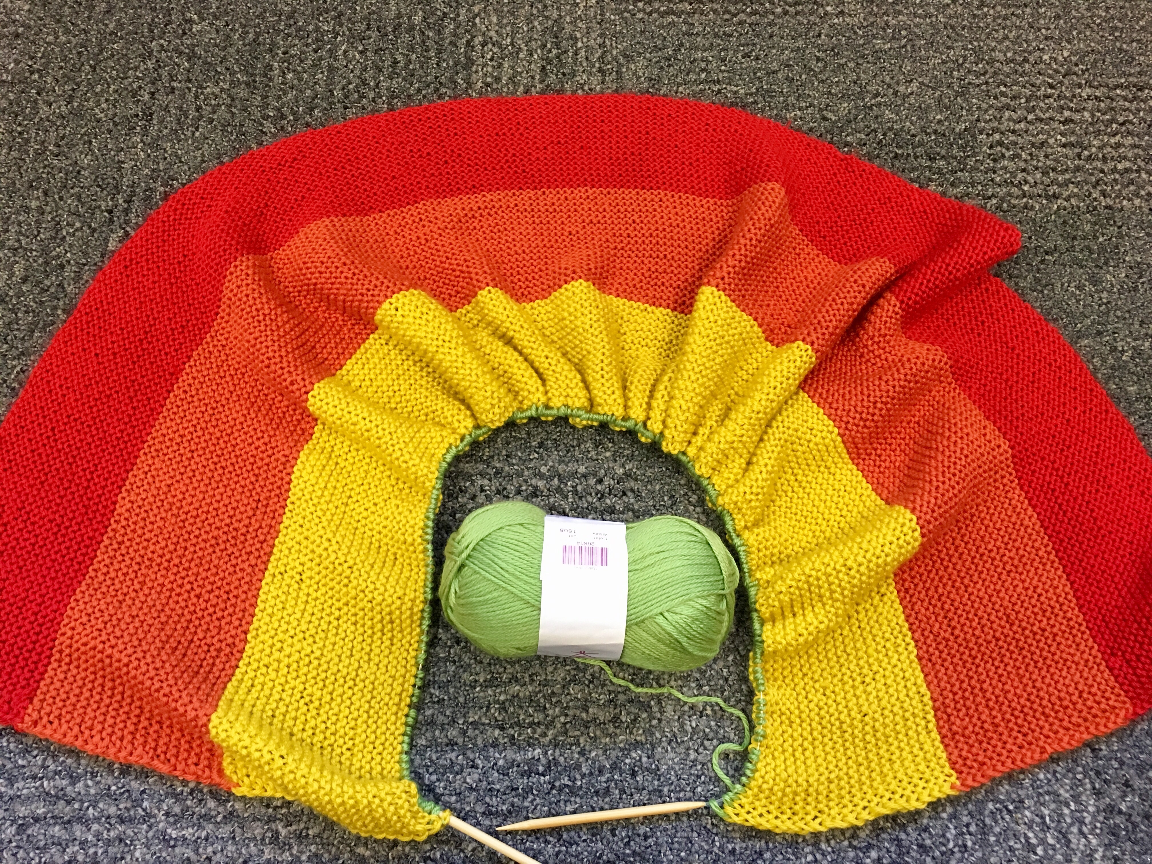 I’m loving my yarn color choices and the nice even stitches. It’s very soothing and keeps me focused on monotonous speakers. Maybe I can get this done faster than I thought?