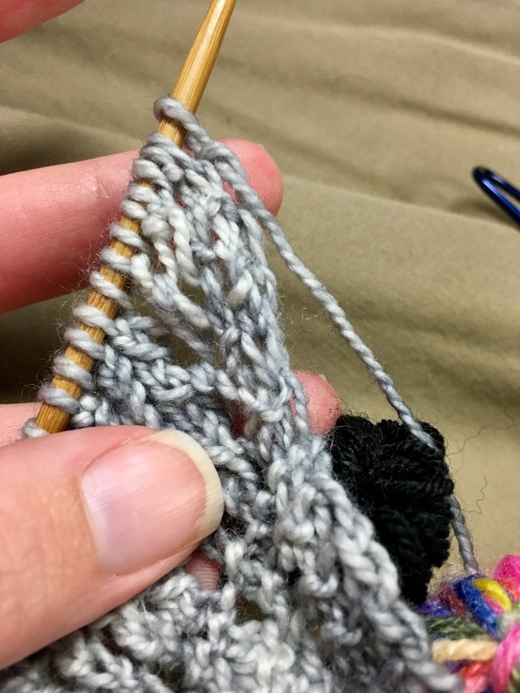 I’m pleased to report that I am back to where I was and I’m carefully moving forward. I’m 16 pattern rows, 16 rest rows and a bind off away from being done! If I can finish this I get 25 points for the KAL! Must….knit….carefully
