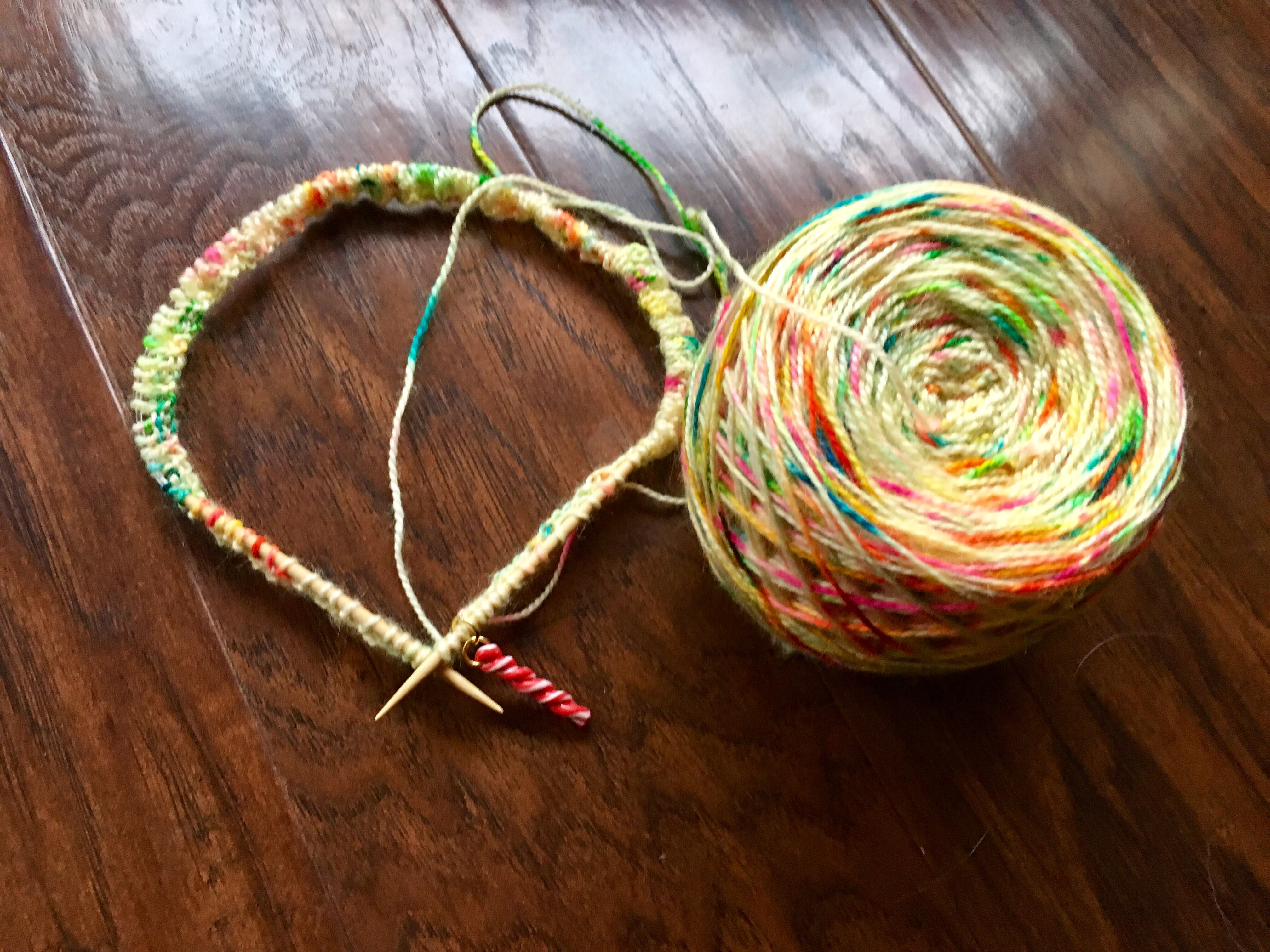 Lastly, but certainly not least…..I found a perfectly geeky project bag. In my house The Big Bang Theory is totally a thing. I watch re-runs almost every day to help block out the negativity that is permeating the world lately. This bag is from AuntStephsHndmdGifts on Etsy. She had all kinds of geek themed fabrics but this just HAD to come home with me. It’s large enough to hold socks, a shawl, or a child’s sweater. I’m so excited about this bag I can’t even decide what should go in here!