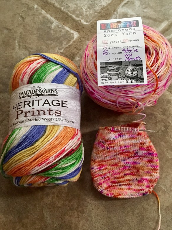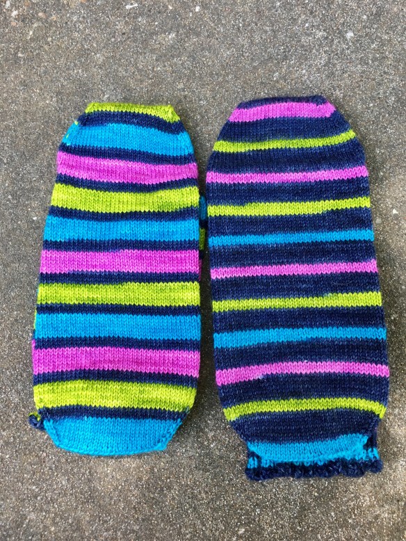 I was able to complete the cast on, 2×2 ribbing and all of the stockinette arm portion as the conference. And then thanks to Daddy doing bedtime that night I was able to complete the thumb hole split. I plan for these to be some long mitts!