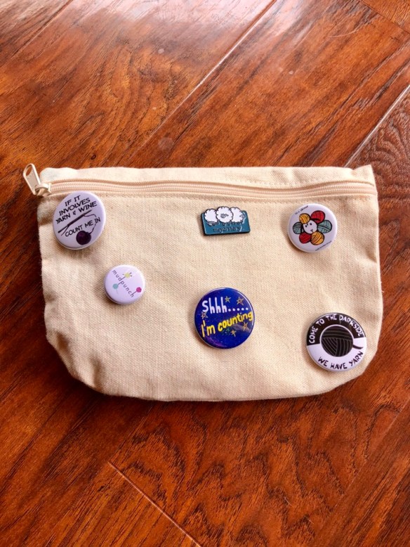 Great idea. I have mine on a canvas bag I bought from knit picks. I’ve never purchased a pin but I’ve received a few from orders. They are really cute though. I’d rather spend the money on yarn
