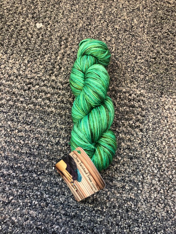 I got some Prime Fingering in the Forest Floor color. This is a 75/25 merino nylon blend in fingering weight. And I have several green skeins kicking around in my stash that I’m seriously contemplating a Free Your Fade by Andrea Mowry next year.