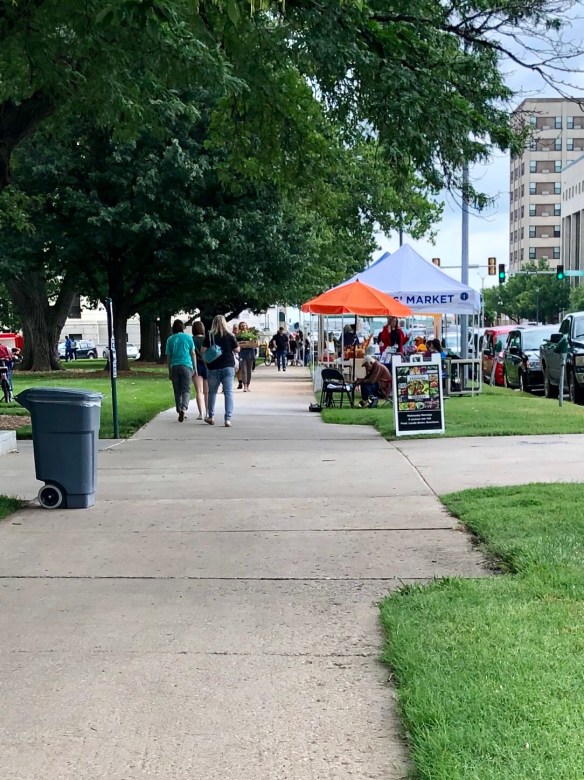 Wednesday is Farmers Market day in downtown Topeka. It is a small but mighty affair every week. My favorite is the fresh baked bread you can find. But that kind of negates the health benefits of walking, lol. But I digress!