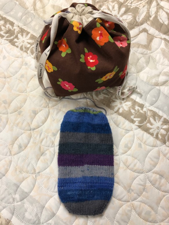 It’s October now and Christmas is looming. I need to get the lead out! My dad’s socks have been a rocky project this year but I think I have turned the corner. I just put in the waste yarn for the second heel.