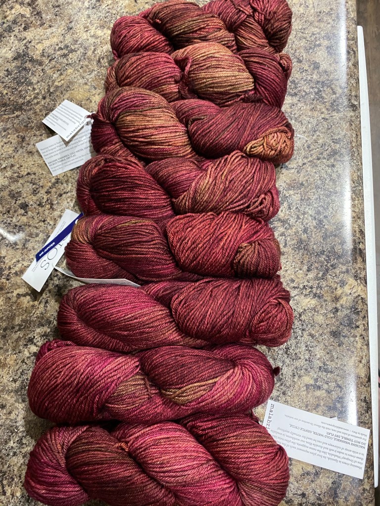 Next up is some fiber and yarn from BlueBerry Chick yarn in South Carolina. I got her some Corriedale in her limited edition Tequila Sunrise color. And then I picked up some gradiate sock yarn minis in her Pansy fade.