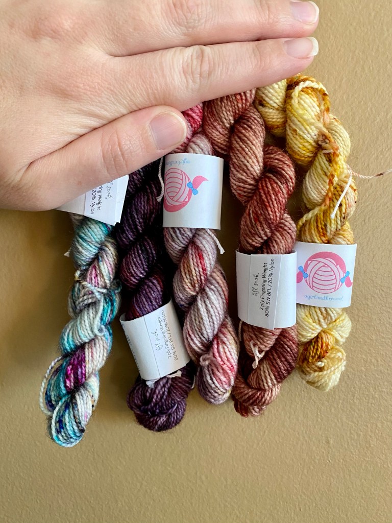 I jumped on the advent calendar this year again. This time I tried AGirlAndHerWool that I found on Etsy. I opted for 24 ten gram mini skeins and full skein for day 25.
