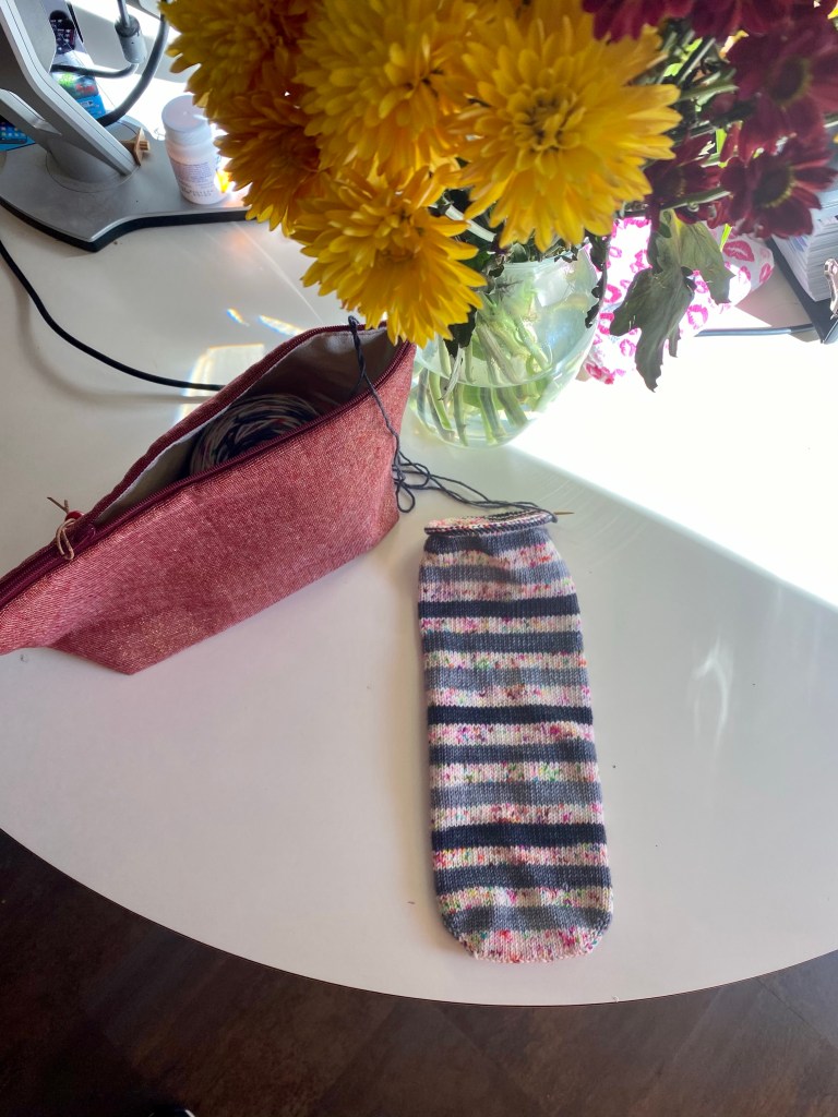 My Carbon Sprinkles Vanilla Socks are growing steadily. This has been my “lap” project during video meetings. Work is getting steadily more complicated as we race to year end and these socks have kept me sane during many a meeting.