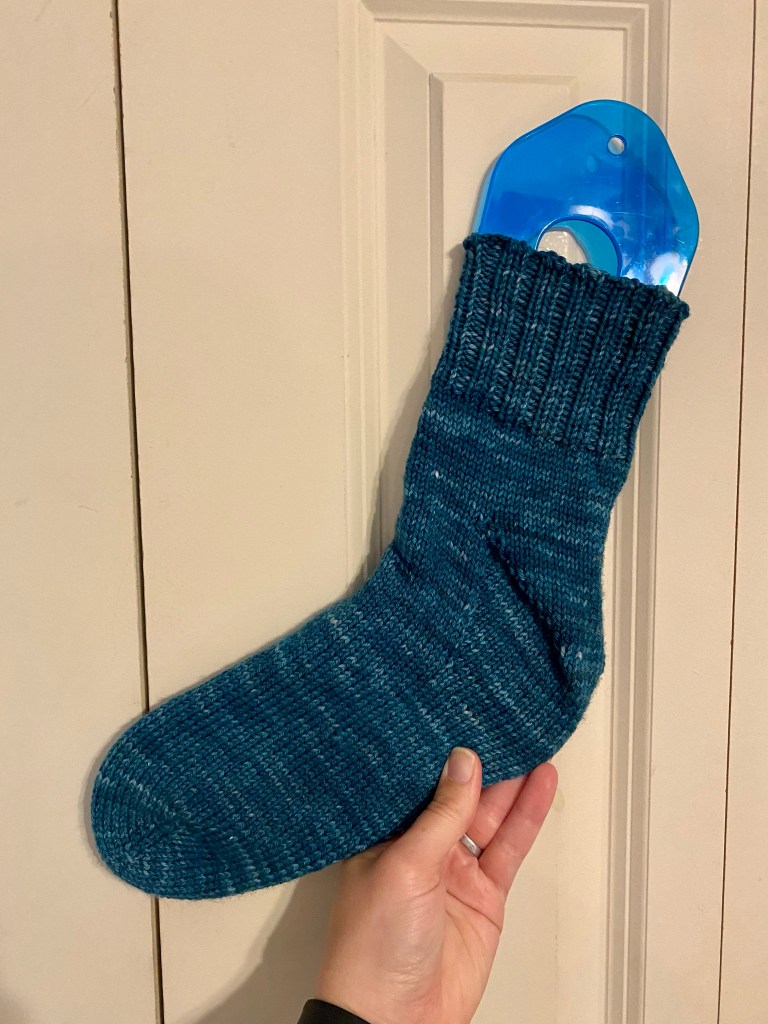 Now….this is the sock I ripped back and reknit with four extra stitches because it was very skinny. And the finished sock fits but it has no negative ease. What this means is that I could have probably done with only adding two stitches instead of four. It bothers me but not enough to rip back and redo again.