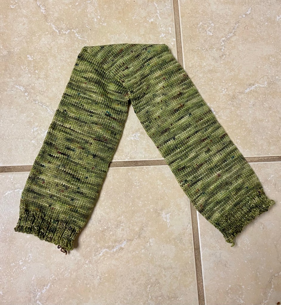 This is a skein of String Theory Inertia Self Striping in the Stark Effect colorway. Its very neon and very spring/easter-y. I LOVE IT. And this much sock is exactly one movie’s worth of stockinette in the round.