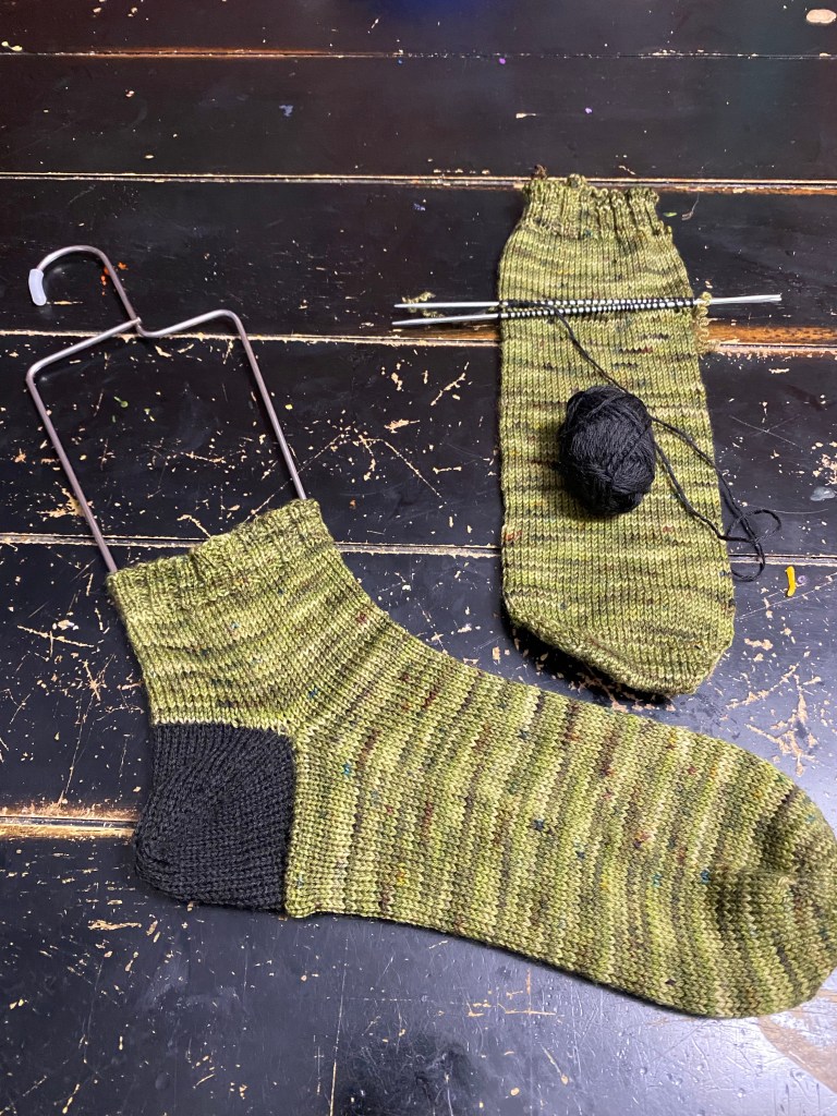 I think I will knit a sock tube and cuff and then add an all black heel as a contrast. This project is just making me so happy. I will be sad when this one is over and might have to order another skein of this colorway…..