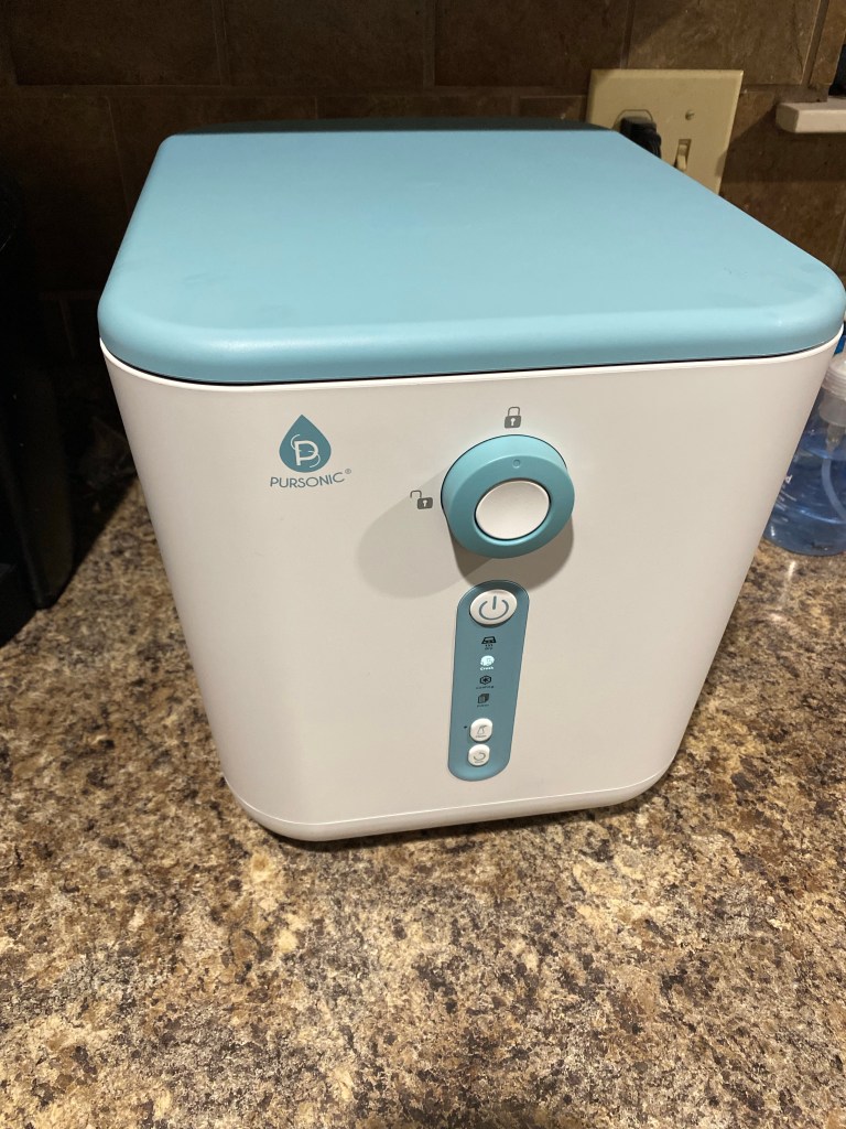 Depending on what goes in, the color is WILD. This was tomatoes, moldy cheesy pasta and coffee grounds. I just empty the bin into our backyard garden bin and start refilling this. It’s quiet and surprising smells good while its “cooking”. It does require filters and maintenance so I don’t know how long it will hold out. But it’s a nice new experiment for us and reducing our trash.
