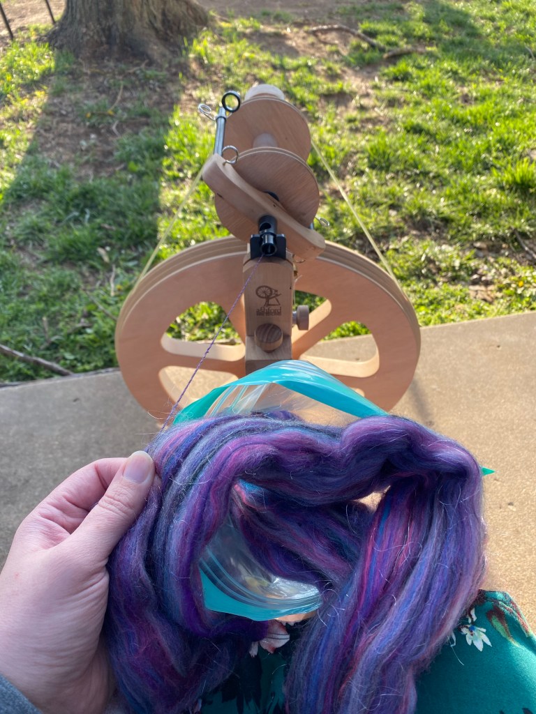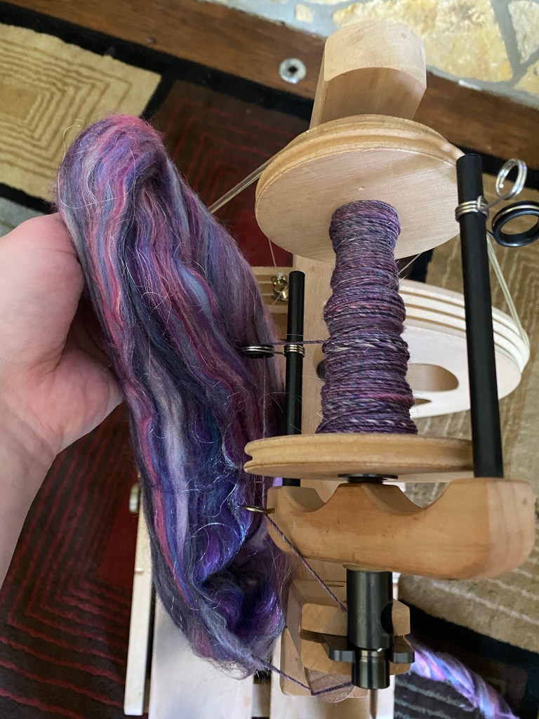 I pulled some vintage KirbyWirby sock yarn from my stash. This one is her Rose Apothecary Remix color. I hand wound this into a big ball and I had a wee little toe for my flight halfway across the country.