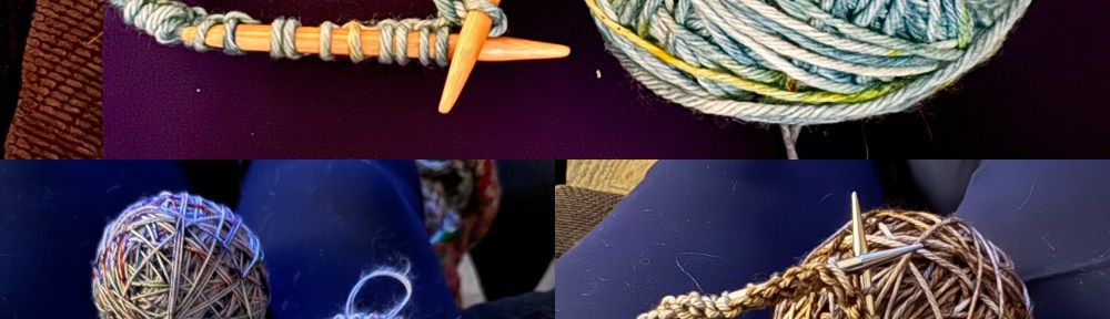 The top hat is some Unicornia Republica Rambouillet Worsted that will turn out to be a basic beanie. I did learn from my LSP Redo Hat that I need US 10 needles and a smaller stitch count. So I am working with 72 stitches and calling this my Bonnie May hat as that is the colorway name of this yarn.