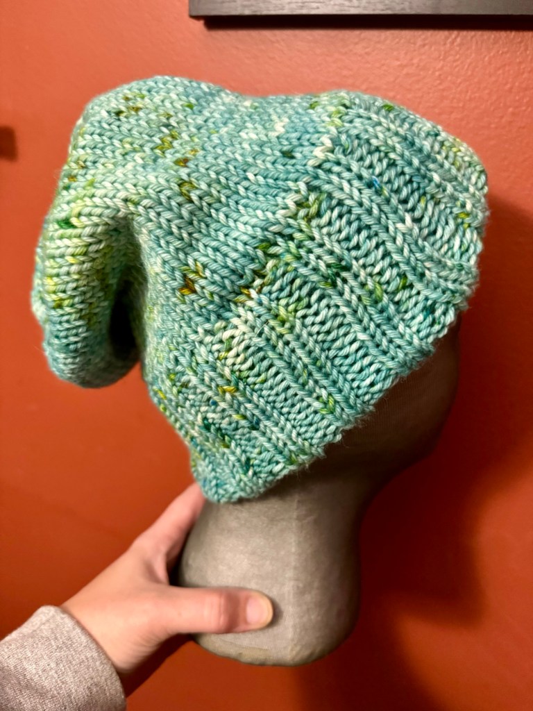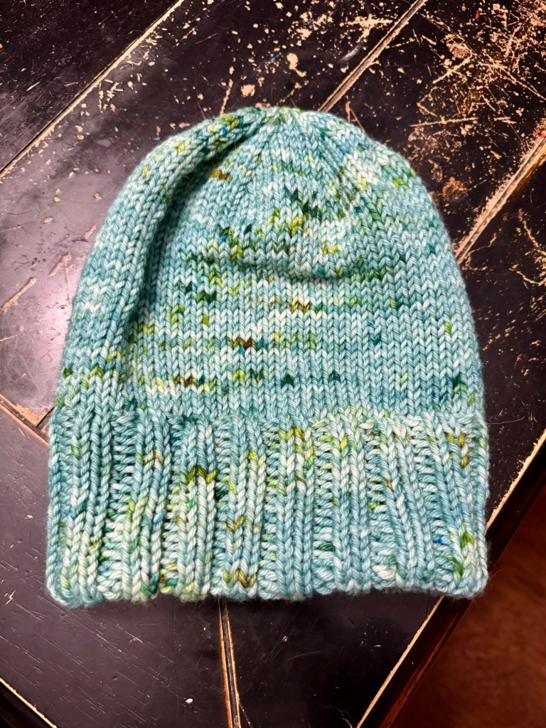 Pattern: My own basic beanie recipe, this time with 72 stitches and a ribbed brim