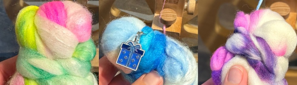 I am not spinning my fiber advent calendar in real time. I am opening each day on the day to get a little dopamine boost. But I decided to set aside some time to work up the first three days.