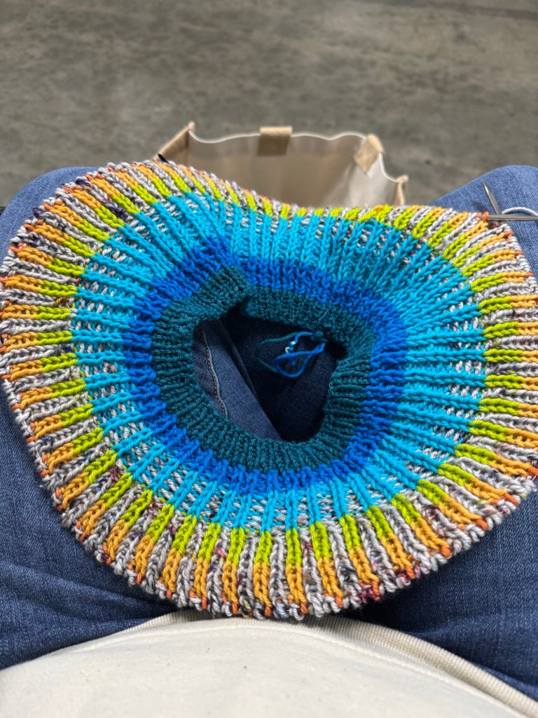 I was worried about my choice of a rainbow gradient when in the lime and yellow sections. I was not digging it. But now that I am adding orange and I can picture the red I think I will like it in the end.
