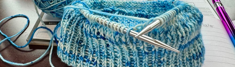I am past the infernal one by one ribbing on my Online Training Hat! Though I am still stuck in the training classes…