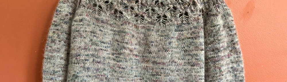 This sweater ended up with over 1,500 yards of yarn. I used 1.81 skeins of the sock yarn and 3.6 skeins of the mohair. That is 271 grams of yarn in the finished garment. I knit the 48.5 inch bust size which came me just slight positive ease. The fabric is pretty stretchy so it has a lot of forgiveness.