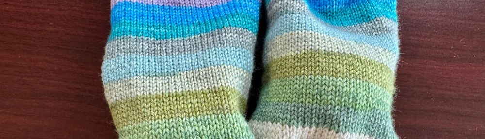 I am not quite halfway but the stripes are progressing nicely. I do notice that without the flecks/contrast added that this stockinette is working up at firmer gauge. Not always a bad thing for sock, especially when someone else will wash/wear them. I’m hoping with the upcoming weekend that I can get pretty far.