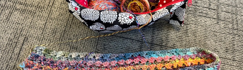 I have had my 2025 Pigskin Party handspun on my desk since the fall and this scrappy spin in a glass jar calling my name. None of this is a consistent weight or grist. And the colors are crazy so I decided to make a granny stripe blanket using a 5.0MM hook.