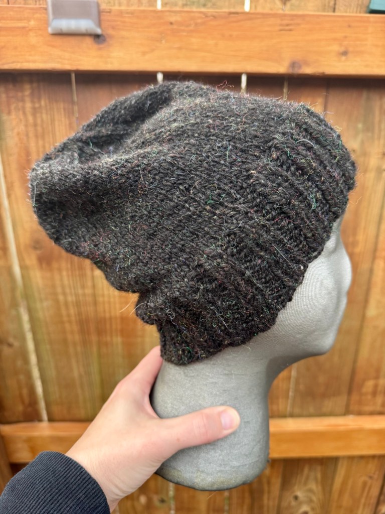 I was successful at finishing my Sparkly Handspun Hat during my all day work training. I even have it washed and ready for glamour shots