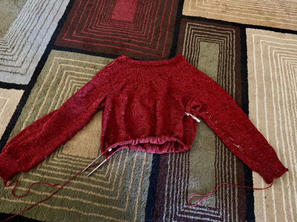 It’s finally done with endless stockinette! My Round Yoke Pullover is at the hem!