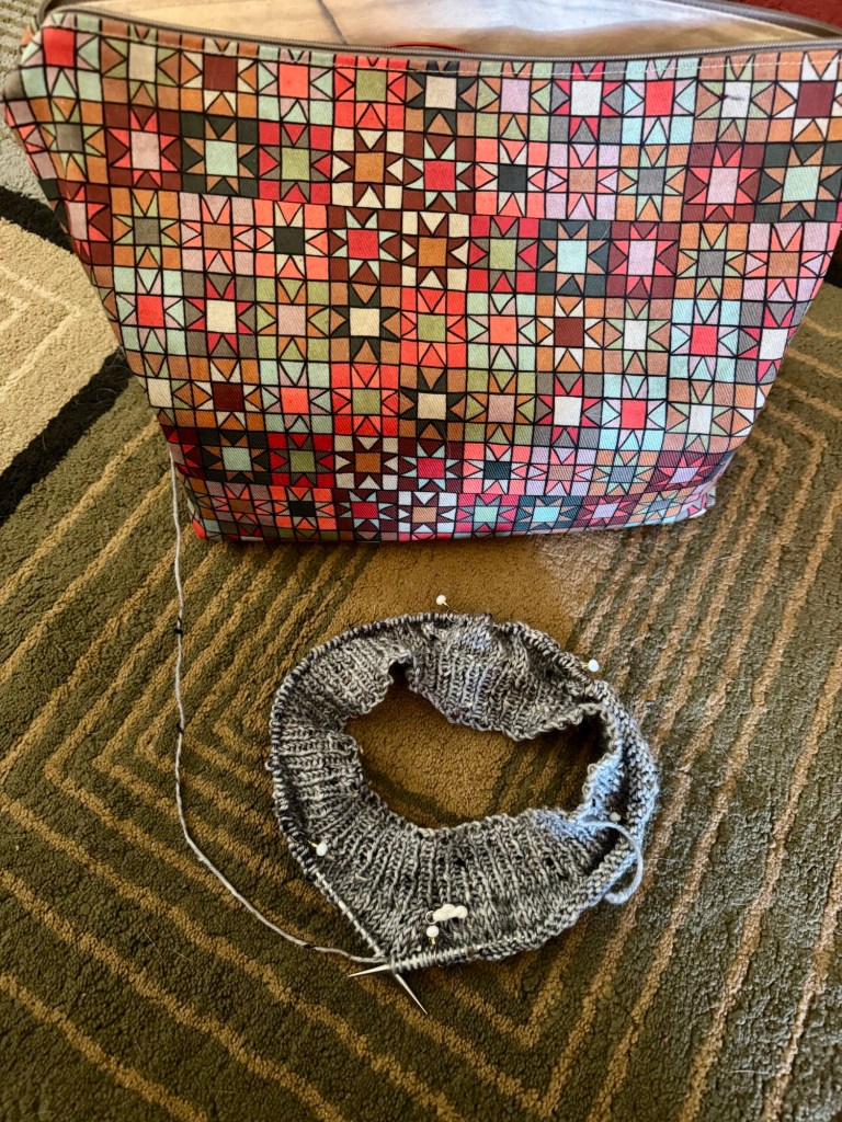 This silk and merino brim can work up to be quite splitty. I have to be very careful with my metal needles. This project bag has been living in my work back pack. It counts as “emergency supplies” for long meetings and boring conference calls.