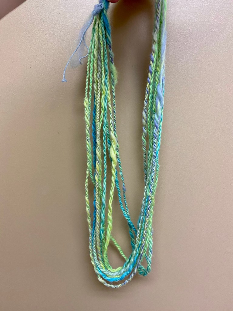 I ended up with 114 gram skein that resulted in most 12-13 wraps per inch. So this is most definitely a sport weight yarn. I didn’t get an exact yardage as my counter had trouble latching on to this yarn. But I am going to guess around 185-200 yards?