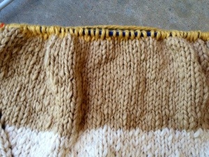 This blanket is beautifully coordinated to our living room colors and couches. And it’s so wonderfully soft after its wash and block in some gentle wool soap. The thick thin yarn texture really gives the stockinette interest and variety.