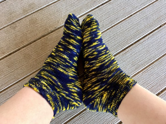 I used 203 yards or 50 grams of the yarn. So I have a pretty generous amount of leftovers to use on another project. I could have stood to make the ribbing a tid bit longer. As they sit now they are more like a no-show sock than an anklet. I can’t decide if that bothers me or not. But I guess if it annoys me I can always undo the bind-off and knit more with the leftovers!