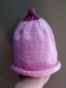 - I knit a 2×2 ribbed brim instead of the rolled brim