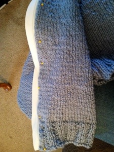 Finally, completed Stashbustin’ #11 is done!! After great feedback from you guys I decided to scrap the zipper. I picked up and knit the band on both sides. I didn’t knit it as wide as indicated on the pattern because I didn’t want the edges overlapping.