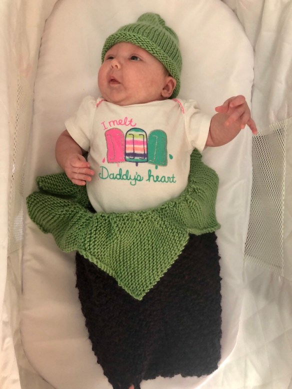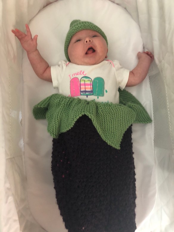 One last post to show off my cute baby knits. I snagged these the same day as my blackberry cocoon photos. But as you can see she was quickly becoming less and less enchanted with being mommy’s photo subject, lol.