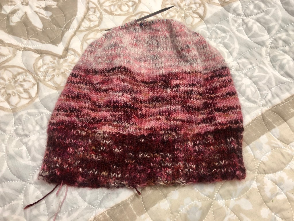 I may have gone overboard after my too tight Everyday (Not So) Slouchy Beanie. This one is WAAY big on my head. It is a roomy fit for sure. It still is a functional and VERY warm hat. But I might have over corrected and gone too big. Nevertheless, I’m not ripping it out as I like the color blocking and it feels to good to empty a pair of needles.
