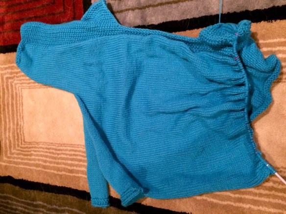 My fingers have done the flying and thanks to a few late nights and an early Christmas trip to the inlaws the sweater of doom is done!