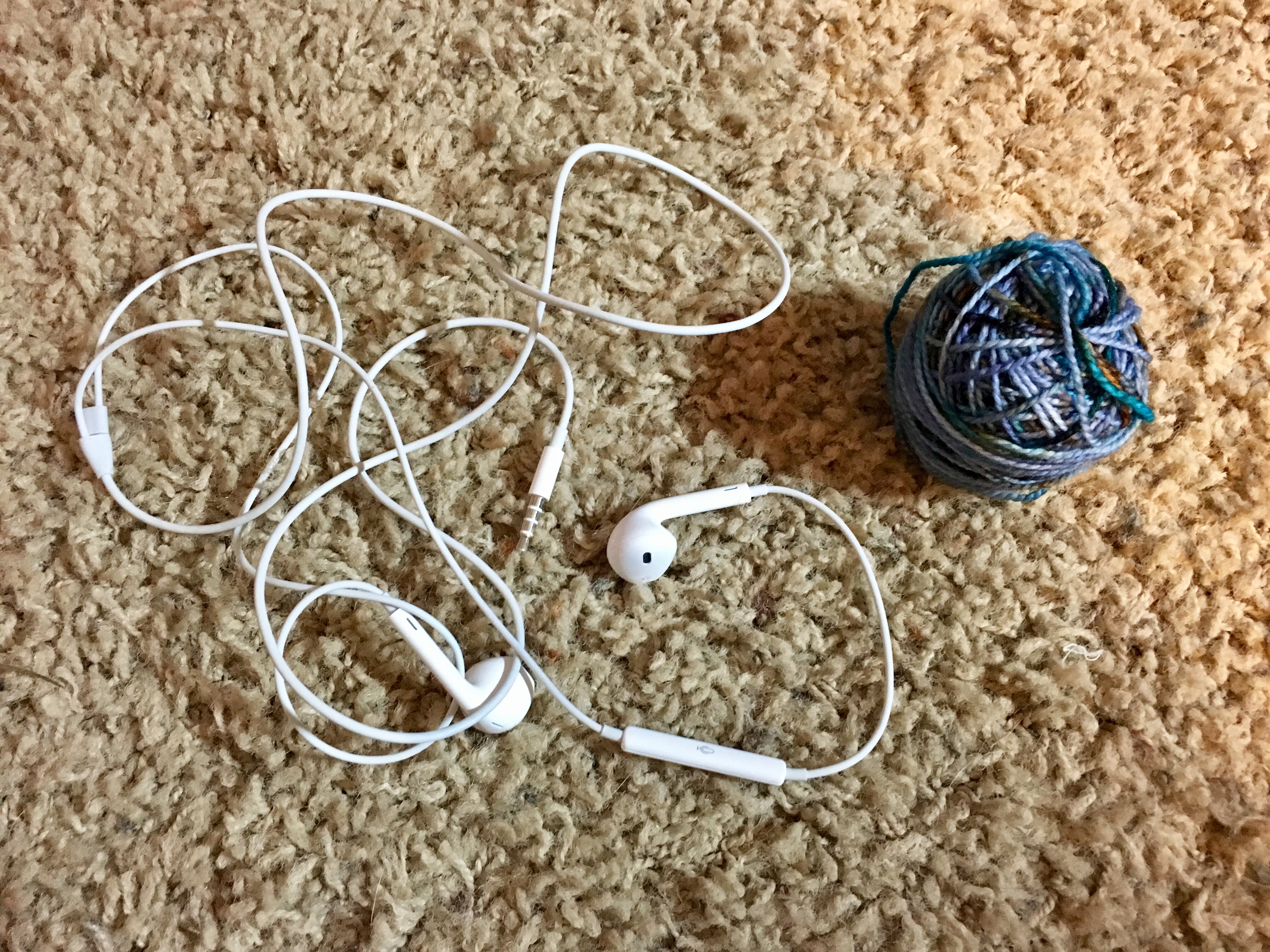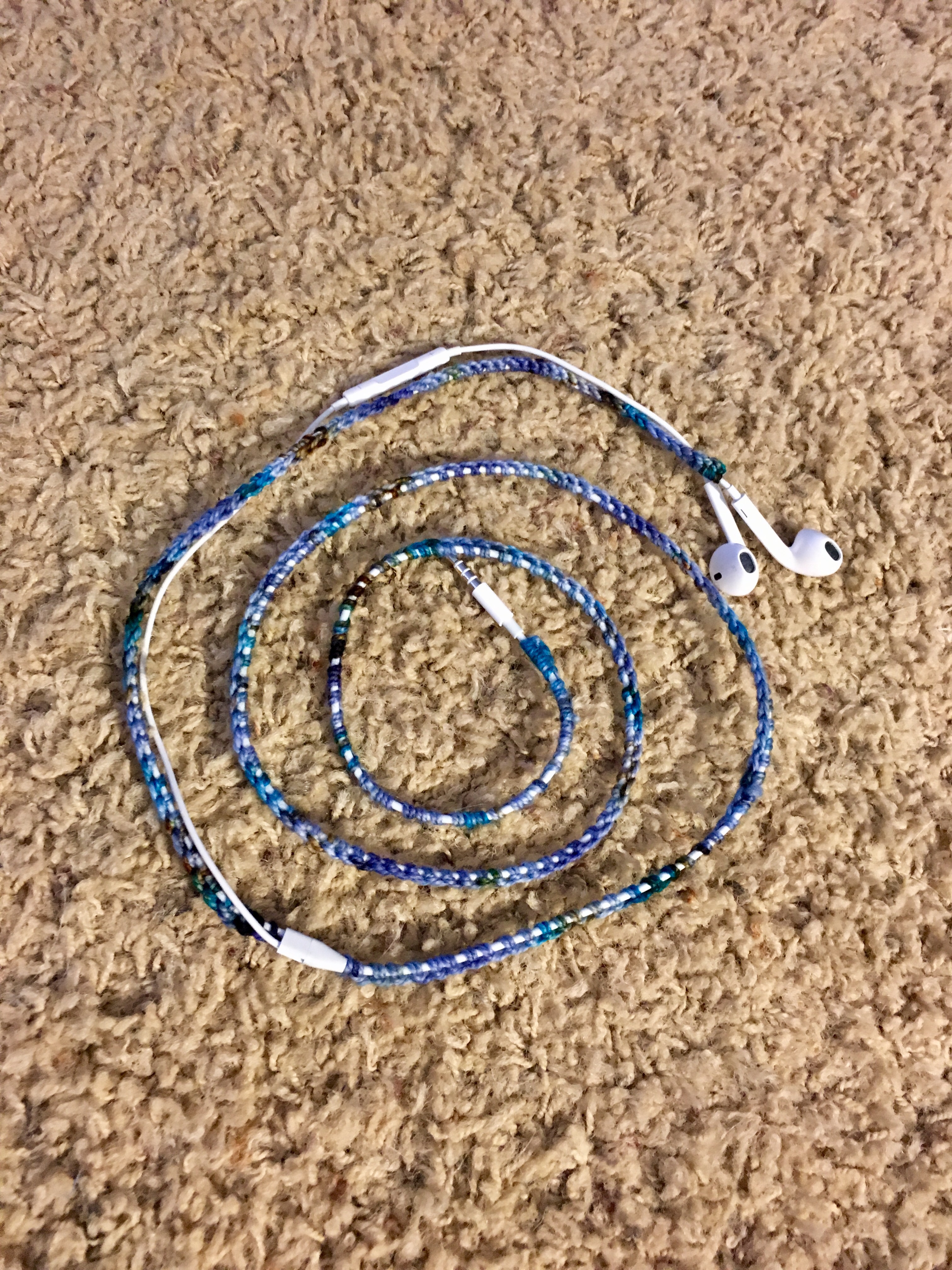 Am I the only one who gets annoyed with tangled ear buds? A long time ago I used some scrap yarn to cover my iPhone ear buds. Well I finally broke those ear buds and broke out another pair. After several weeks of annoying tangles I broke down and pulled out a crochet hook.