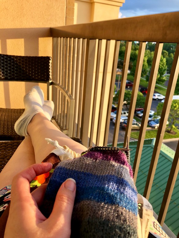 Y’all, it was chaos and no one got any sleep in an unfamiliar place. But all reports say that everyone had a good time. PB up and finally decided to fully commit to walking! We had two adjoining rooms with the second having a balcony. After a FULL day running around Saturday I snuck out on to the patio with Dad’s 2019 Christmas Socks and put on a few rounds after the kids went to sleep.