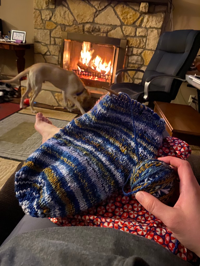 This feels better! My hat is back to normal human sized and zooming right along. The fireplace feels toasty on my feet and the puppy doesn’t understand why I get to bring sticks in the house and he cannot.