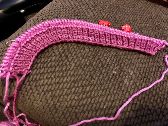 I may very well be playing Yarn Chicken with this sweater. I’m too scared to weigh my remaining yarn or even measure the body of this sweater. Honestly…I have no clue where I am at in this sweater, I just keep knitting neat little stripes. I’m torn between just knitting until I run out and figure it out then. Or, doing some measuring and math to figure out if I need to dig out more coordinating sport weight yarn.