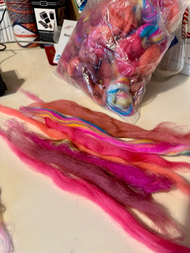 I am pretty happy with this yarn of almost 600 yards of finished yarn. I thought perhaps I would make a blanket out of this yarn but I would have enough yarn to make a cropped sweater? I may need to marinate on this one.