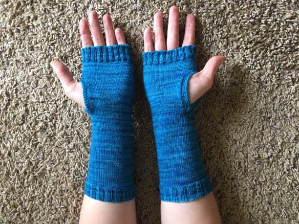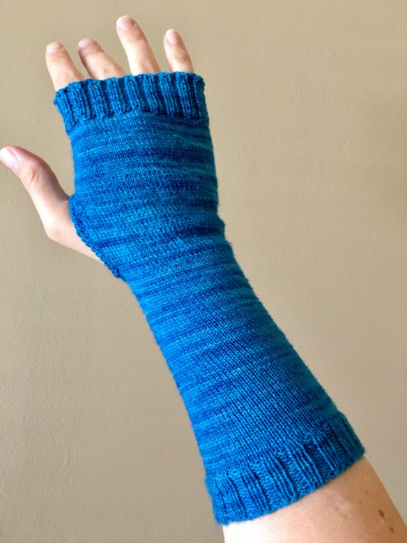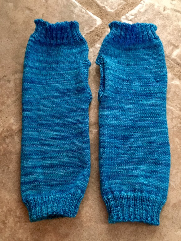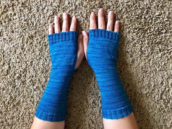 While on vacation I managed to finish my True Blue Fingerless Mitts!