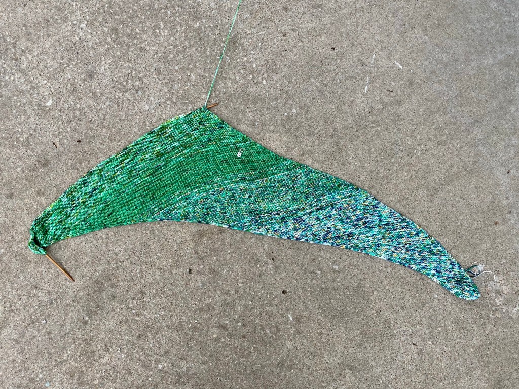 I tried to style this shawl on my necklace holder. This photo was before it’s wash and blocking so it’s a little scrunchy. But I think it still looks nice. My mom is coming this week so I can get her input on the tassels before I do final touches.